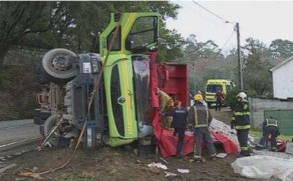 O acidente casou um ferido, assistido no local, e que era o único ocupante do camião acidentado.