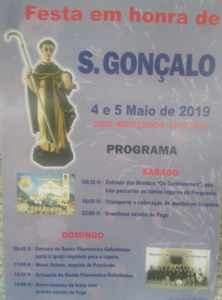 Tal como sempre acontece no primeiro fim de semana do mês de maio, a freguesia de Monte Córdova celebra São Gonçalo, este ano nos dias 4 e 5.