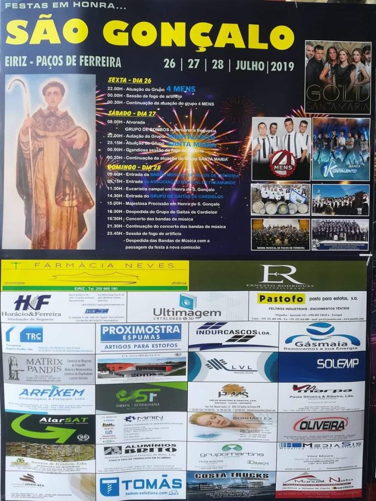 Durante três dias, a freguesia de Eiriz no Município de Paços de Ferreira, vai estar em Festa, celebrando São Gonçalo.
