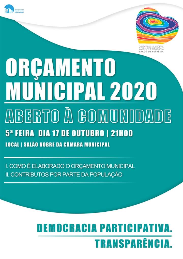 Na próxima 5ª feira, a partir da 21h00, no salão nobre da Câmara Municipal, terá lugar uma sessão de trabalho, aberta à comunidade, no âmbito da preparação do orçamento municipal para o próximo ano de 2020.