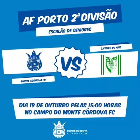 Este sábado, 19 de Outubro, o Monte Córdova Futebol Clube recebe no seu reduto a formação do São Pedro de Fins, numa partida a contar para a jornada 6 da Série 1 do Campeonato Distrital da 2 Divisão ds Associação de Futebol do Porto.