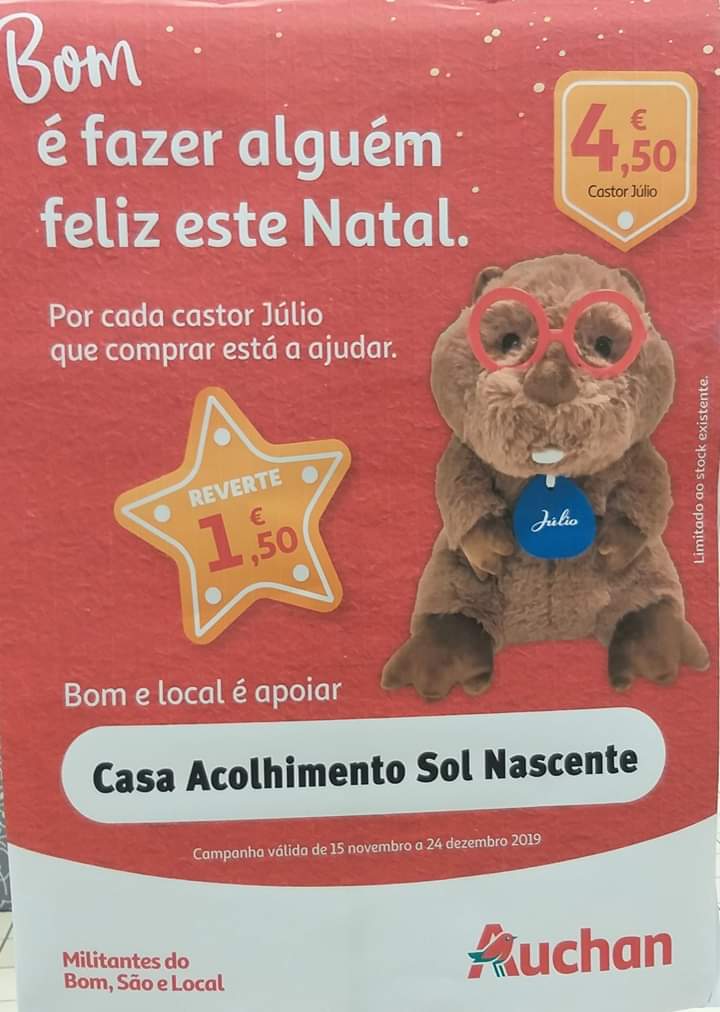 Apresentado ao público no ano passado, o Castor Júlio volta às lojas Auchan e por cada peluche comprado (disponível por 4,50 euros), parte do valor (1,50 euros) reverte a favor de associações seleccionadas por cada supermercado.