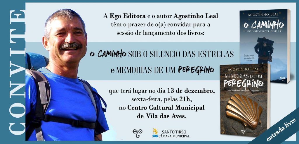 Na próxima sexta-feira, 13 de Dezembro, o autor Agostinho Leal vai estar no Centro Cultural de Vila das Aves para o Lançamento de dois livros de sua autoria, “O caminho sob o silêncio das estrelas” e “Memórias de um peregrino”. O certame tem início agendado para as 21-horas.