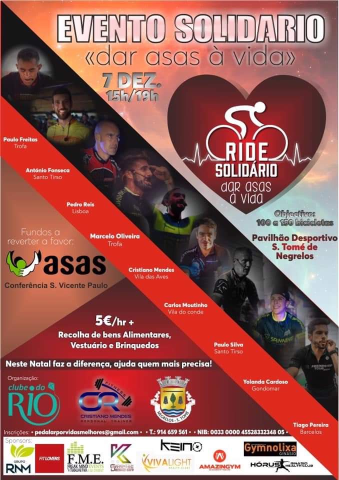 Com o objetivo de proporcionar um um Natal condigno às famílias mais desfavorecidas, decorre no próximo dia 7 de Dezembro em São Tomé de Nagrelos, uma prova Ride Solidário Indoor-Cycling intitulado “Dar Asas à Vida”.