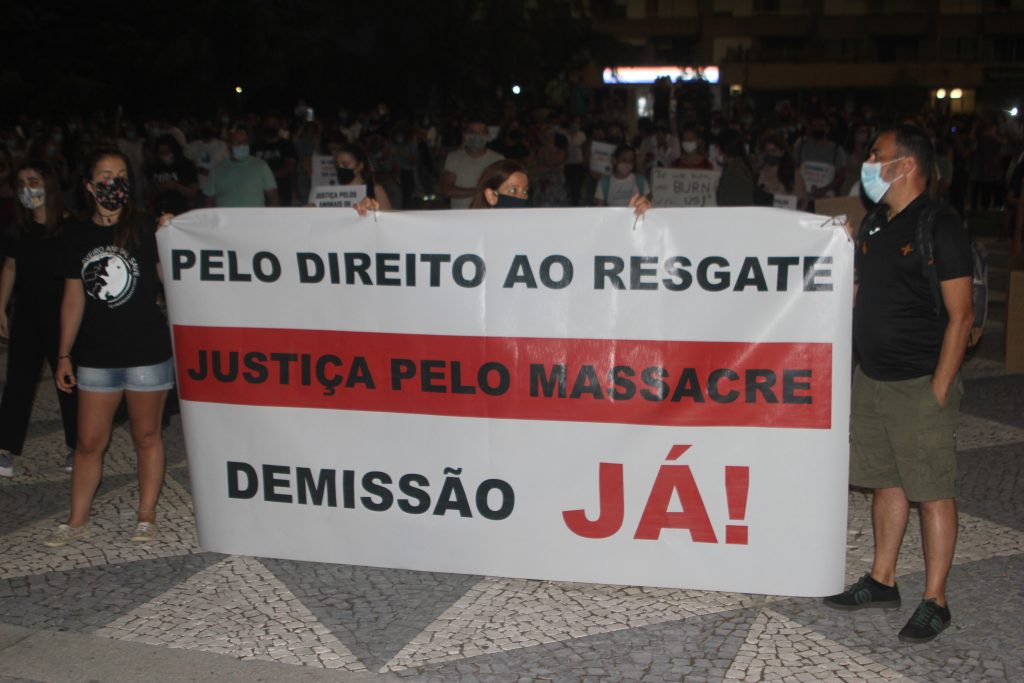 Várias centenas de pessoas concentraram-se durante a noite desta segunda-feira junto à Câmara Municipal de Santo Tirso para protestar “contra o massacre” ocorrido no fim de semana na serra da Agrela, em que 54 animais de um abrigo ilegal morreram num incêndio.