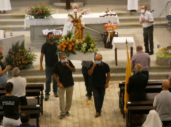 Cumprindo todas as normas de segurança e distanciamento impostas pela DGS devido à pandemia Covid-19, a eucaristia teve início pelas 20h30, solenemente presidida pelo reverendo Pároco local, Manuel Torres. Foi uma celebração, singela, mas sentida e bastante participativa por parte do movimento associativo da freguesia, que no final, como habitualmente foi brindado com uma lembrança muito bonita.