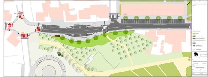 O perfil transversal da Rua Capitão da Praça será caracterizado por uma faixa de seis metros de largura útil, mantendo o fluxo de trânsito normal de dois sentidos. No início da rua o cruzamento será elevado para reduzir a velocidade do tráfego automóvel e, assim, salvaguardar a segurança de peões e automobilistas.