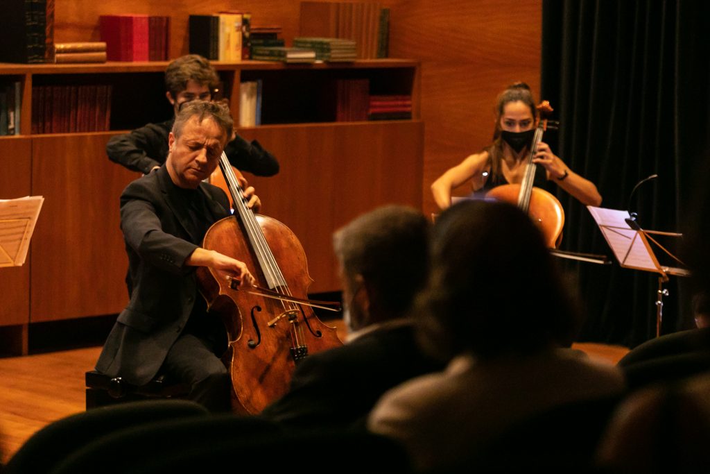 O concerto terminou com a interpretação de “Elegia”, composta por Gabriel Fauré, que contou com Marc Coppey como solista, acompanhado por seis dos seus alunos, todos eles estudantes nalgumas das mais conceituadas escolas europeias de música.