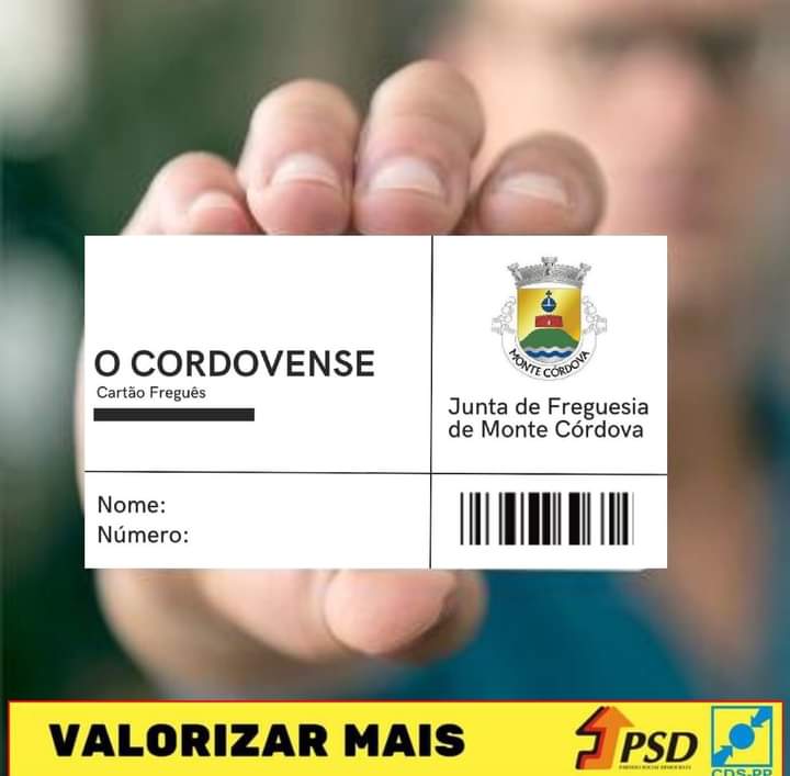 Um dos compromissos assumidos pela Coligação Valorizar + Monte Córdova é a criação de um cartão freguês, denominado “O Cordovense”.
