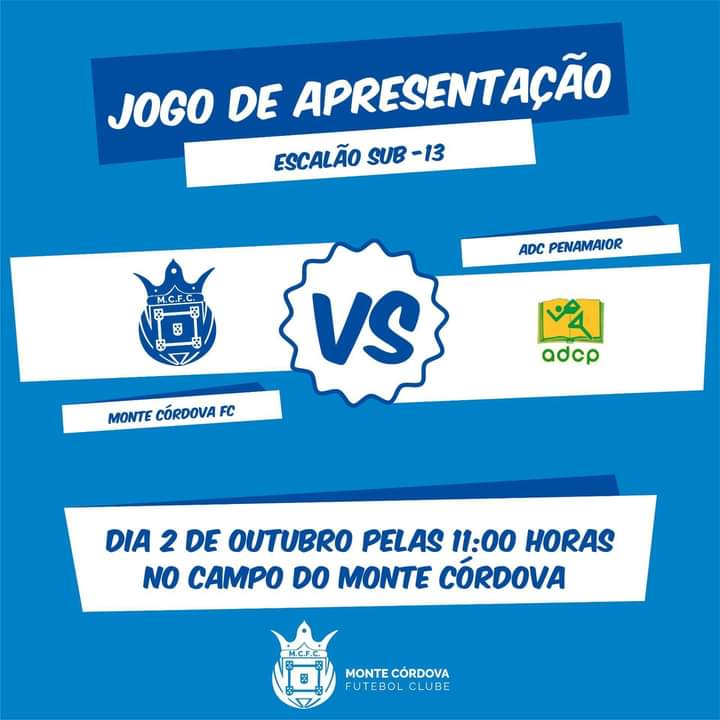 O escalão de Sub-13 do Monte Córdova Futebol Clube, realiza o seu jogo de apresentação no próximo sábado, 2 de outubro frente à Associação Desportiva e Cultural de Penamaior.
