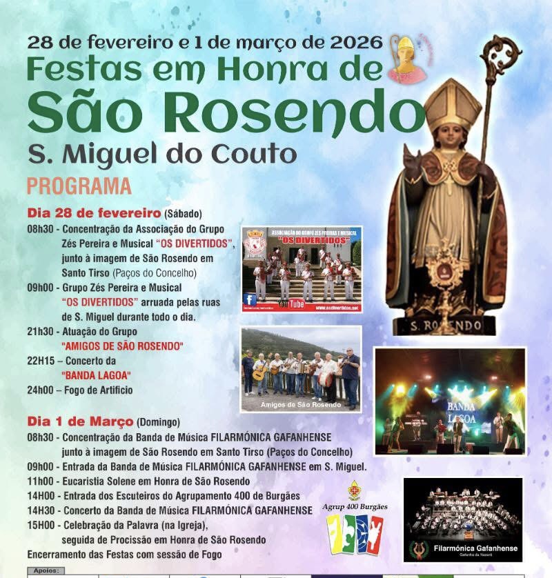 A povoação de S. Miguel do Couto prepara-se para viver, nos dias 28 de fevereiro e 1 de março de 2026, as tradicionais Festas em Honra de São Rosendo, um dos momentos mais aguardados do calendário religioso e cultural local.