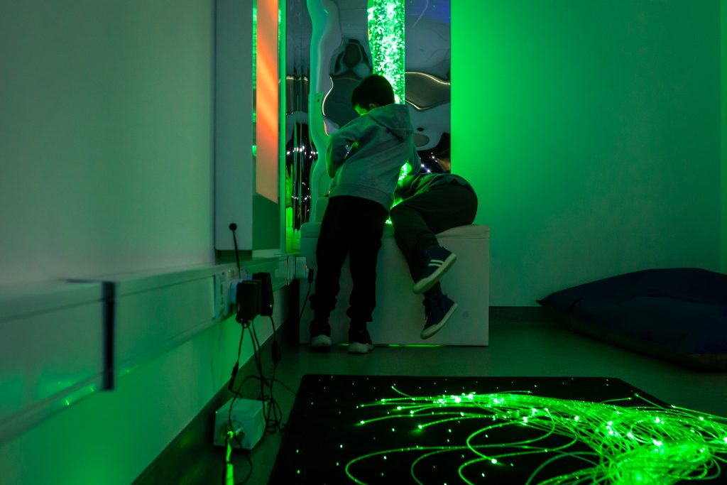 Instalada na Escola Básica de S. Tomé de Negrelos, a sala está equipada com diversos recursos especializados, entre os quais uma coluna de água interativa, fibras óticas, projetores de efeitos e UV, painel interativo de som e luz, baloiço suspenso, equipamentos de relaxamento e materiais de estimulação cognitiva e emocional. O espaço dispõe ainda de kits de aromaterapia e musicoterapia, entre outros dispositivos destinados à estimulação sensorial integrada.