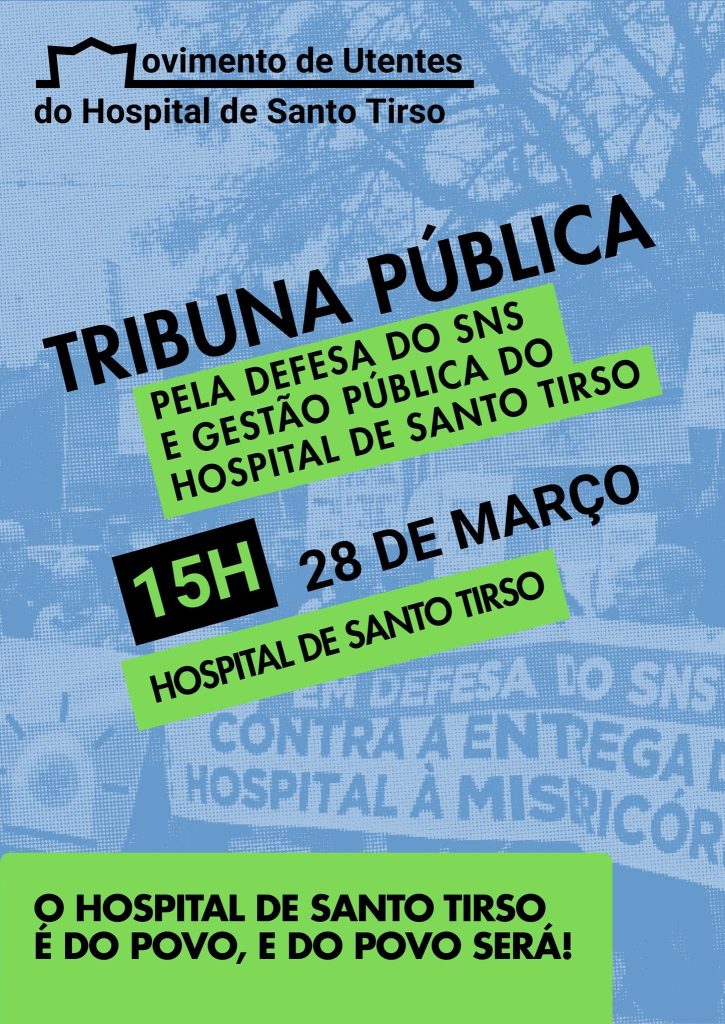 O Movimento de Utentes do Hospital de Santo Tirso anunciou a realização de uma tribuna pública no próximo dia 28 de março, às 15h, em frente ao Hospital de Santo Tirso, com o objetivo de defender a gestão pública da unidade de saúde e alertar para o que considera ser um risco de privatização.