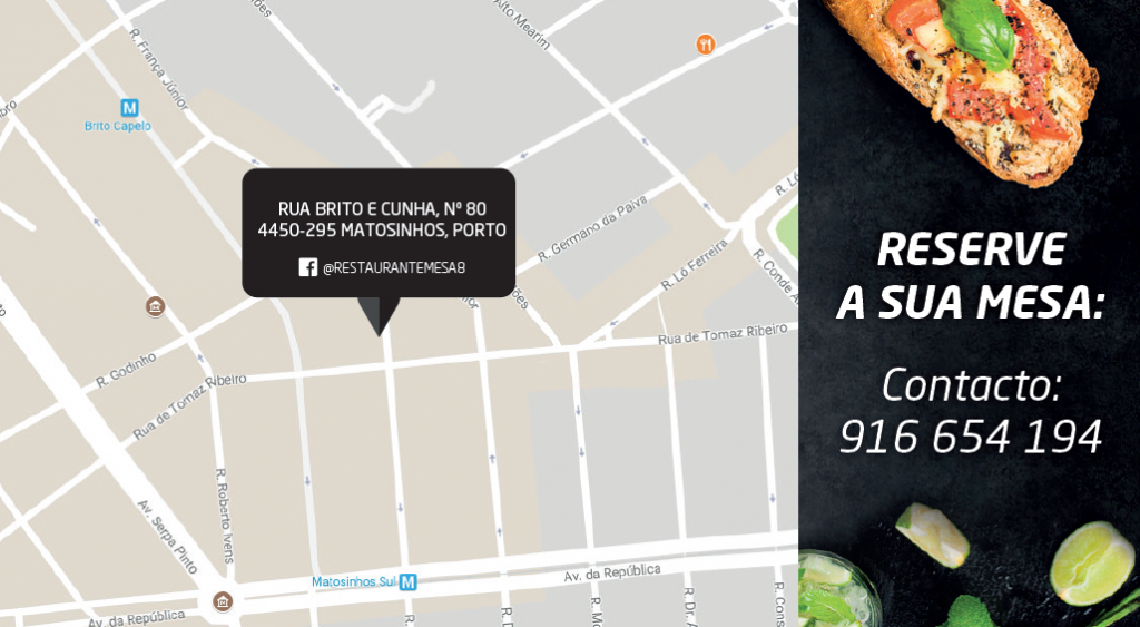 A sessão de inauguração é aberta ao público em geral e terá música ao vivo, acompanhada de um cocktail. O Mesa 8é uma empresa do Grupo Pinto da Costa & Carriço, o mais recente projeto, e situa-se na Rua Brito e Cunha, nº80.
