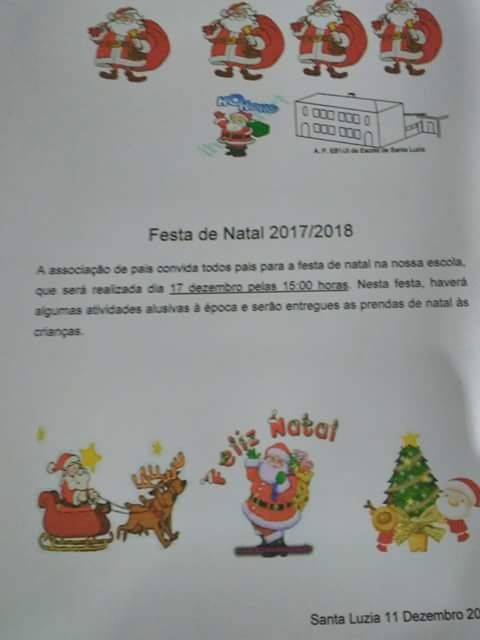 A Associação de Pais e Encarregados de Educação da Escola Básica de Santa Luzia, vai levar a cabo uma Festa de Natal.