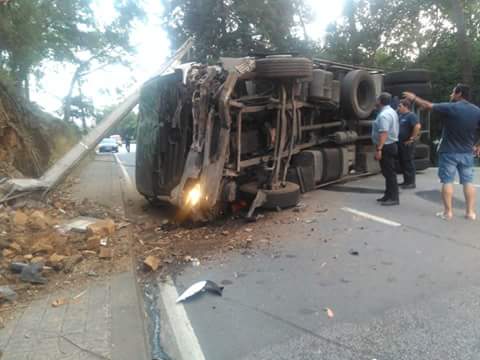 Para o local foi mobilizada uma equipa técnica da EDP já que o camião acabou por derrubar um poste com corrente elétrica.