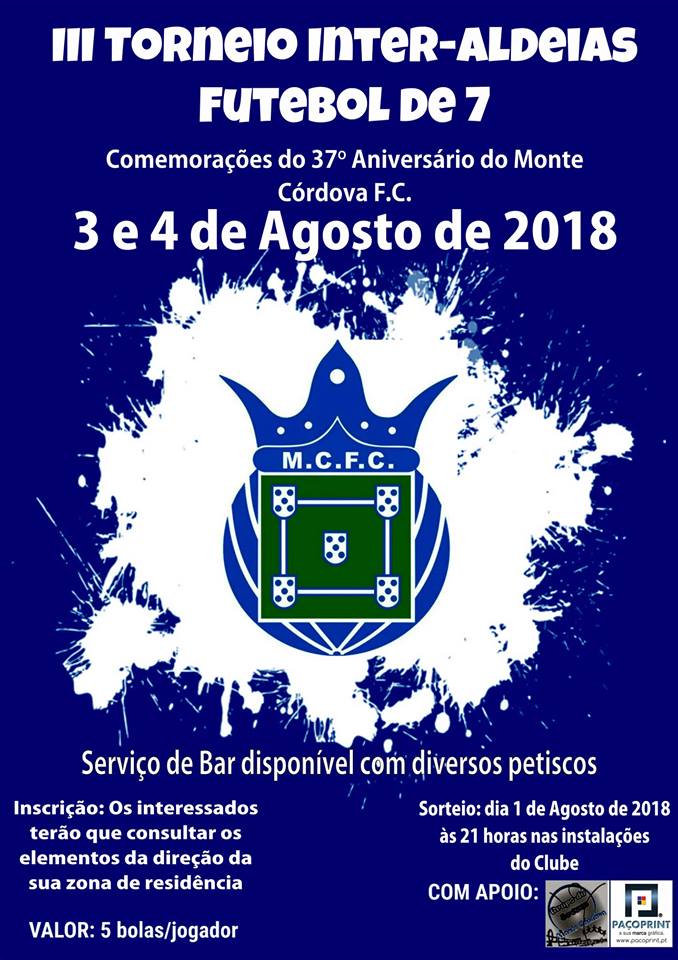O Monte Còrdova Futebol Clube prepara as comemorações do seu 37º aniversário com um Torneio de Futebolde sete, que vai coocar frente a frente as aldeias da Freguesia.