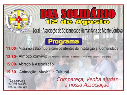 Associação de Solidariedade Humanitária de Monte Córdova, promove no próximo dia 12 de agosto o seu “Dia Solidário”.