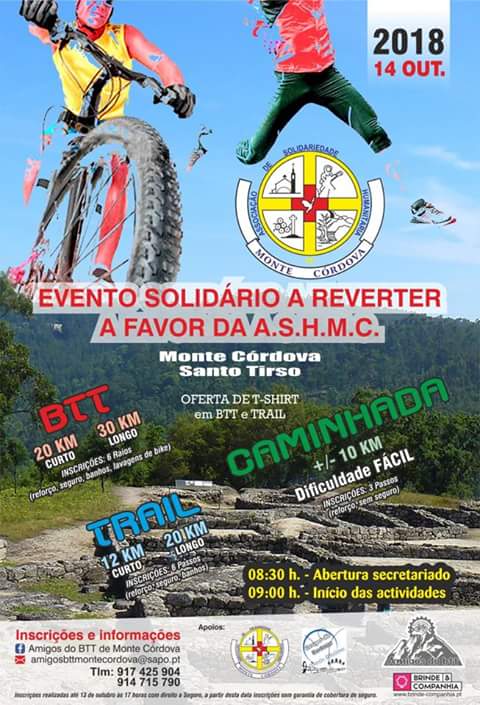 Às inscrições estão abertas e podem ser efetuadas, através do e-mail amigosbttmontecordova@sapo.pt, na página de Facebook – Amigos do BTT de Monte Córdova e dos telefones : 917 425 904 / 914 715 790.