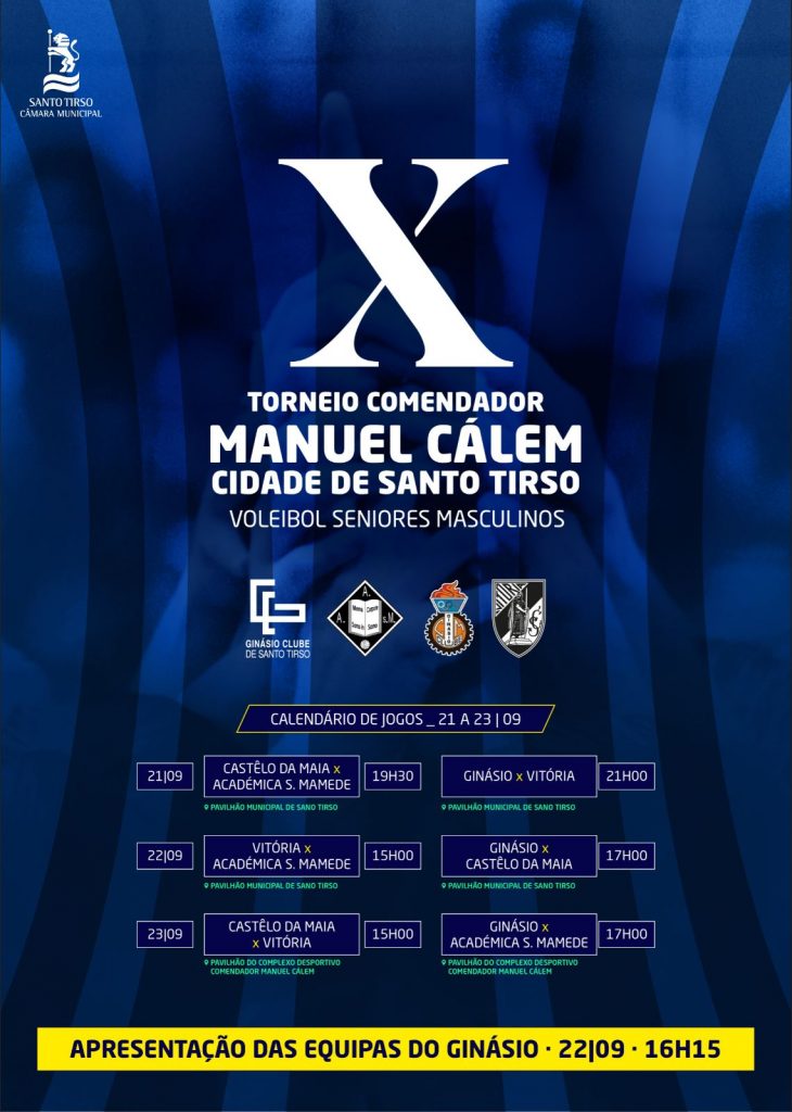 O Ginásio Clube de Santo Tirso irá organizar este fim de semana, de 21 a 23 de setembro, a décima edição do Torneio Cidade de Santo Tirso Comendador Manuel Cálem em Voleibol Seniores Masculinos.